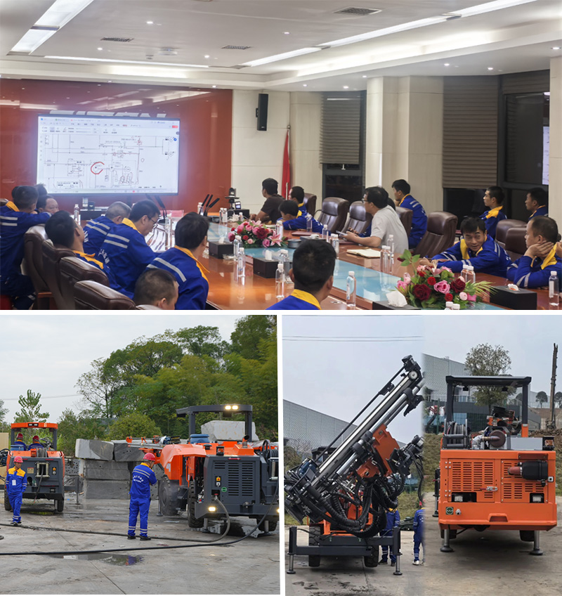 培訓(xùn)以“理論結(jié)合實(shí)踐”的模式開(kāi)展,針對(duì)江西鑫通礦用掘進(jìn)鉆車和礦用錨桿鉆車展開(kāi)教學(xué),理論課程涵蓋臺(tái)車的運(yùn)行原理、保養(yǎng)和維修知識(shí);設(shè)備實(shí)操通過(guò)結(jié)合模擬掌子面對(duì)眼、在巖石上進(jìn)行鉆孔等課程,為學(xué)員提升操作技能打下了堅(jiān)實(shí)的基礎(chǔ)。